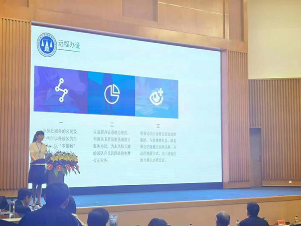 祝賀鷺江公證處成立二十周年。國信公證處在疫情期間率先在全省使用零接觸辦證模式,滿足了當(dāng)事人高效,方便,快捷的公證法律服務(wù)需求。賀娟公證員的發(fā)言稿“辦證零接觸,服務(wù)零距離”榮幸被全國行業(yè)的領(lǐng)頭雁鷺江公證處選中并做為第一發(fā)言人,祝賀賀娟公證員,祝賀國信公證處